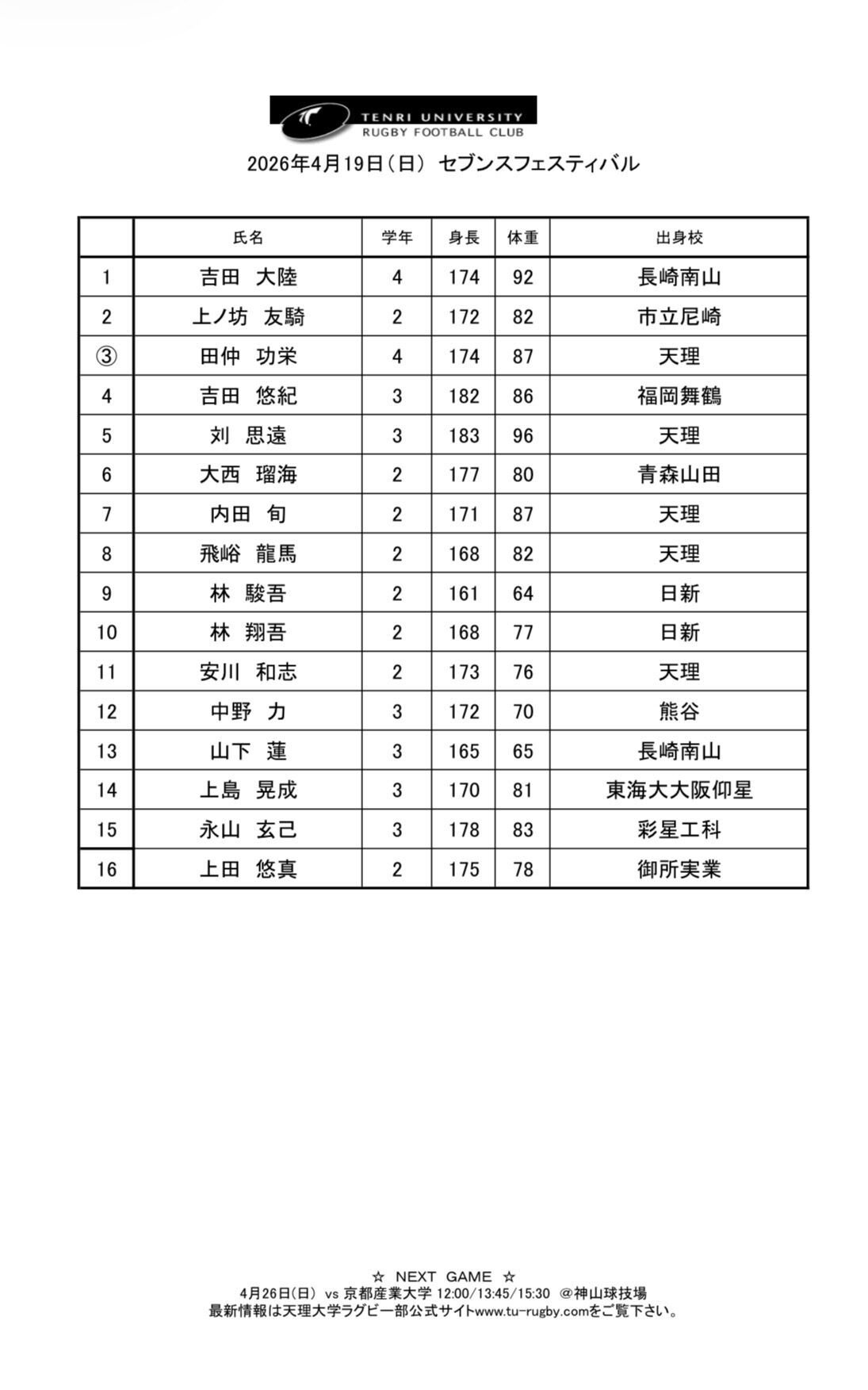 試合情報 2026関西セブンズフェスティバル